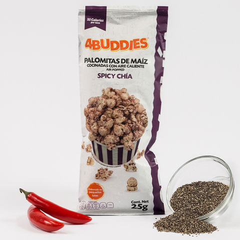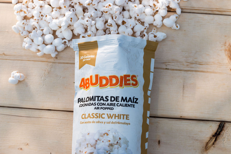 Utilizamos una palomita completamenta blanca, sazonada con sal del Himalaya y con un toque de aceite de oliva.